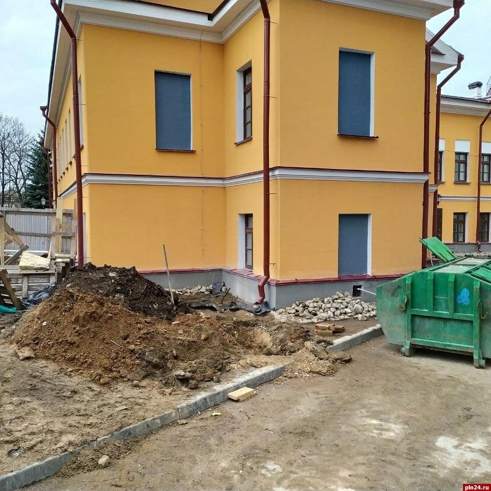 Дом губернатора, в котором располагалась Псковская областная библиотека для детей и юношества им. В.А. Каверина, находится на реконструкции.