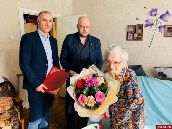 От имени секретаря Генерального совета партии «Единая Россия» Андрея Турчака с днем рождения поздравил ветерана Маргариту Сек депутат Псковской гордумы, член фракции «Единая Россия» Константин Болотин.