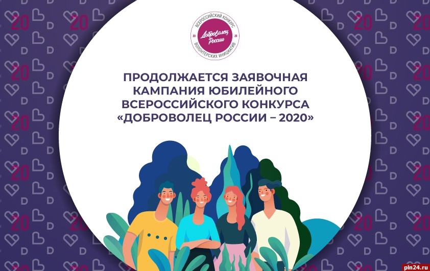 В 2020 году Всероссийский конкурс волонтерских инициатив «Доброволец России» проходит в десятый раз. Конкурс дает возможность пройти обучение у ведущих экспертов онлайн и в рамках Окружных форумов добровольцев, выйти на новый уровень развития, найти единомышленников и партнеров, тиражировать свой проект, а также получить грант на развитие своего проекта. Грантовый фонд конкурса составляет 90 миллионов рублей, что в 2 раза больше, чем в прошлом году, сообщили Псковской Ленте Новостей организаторы конкурса.