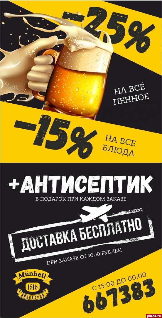 «На все блюда мы делаем скидку 15%, а на все напитки 25% - согласитесь, заманчивое предложение! Соскучились по нашим ребрышкам или щечкам, по пшеничному или ореховому - не беда. Доставим к вашему порогу, соблюдая все меры безопасности!» - обещают в ресторане.