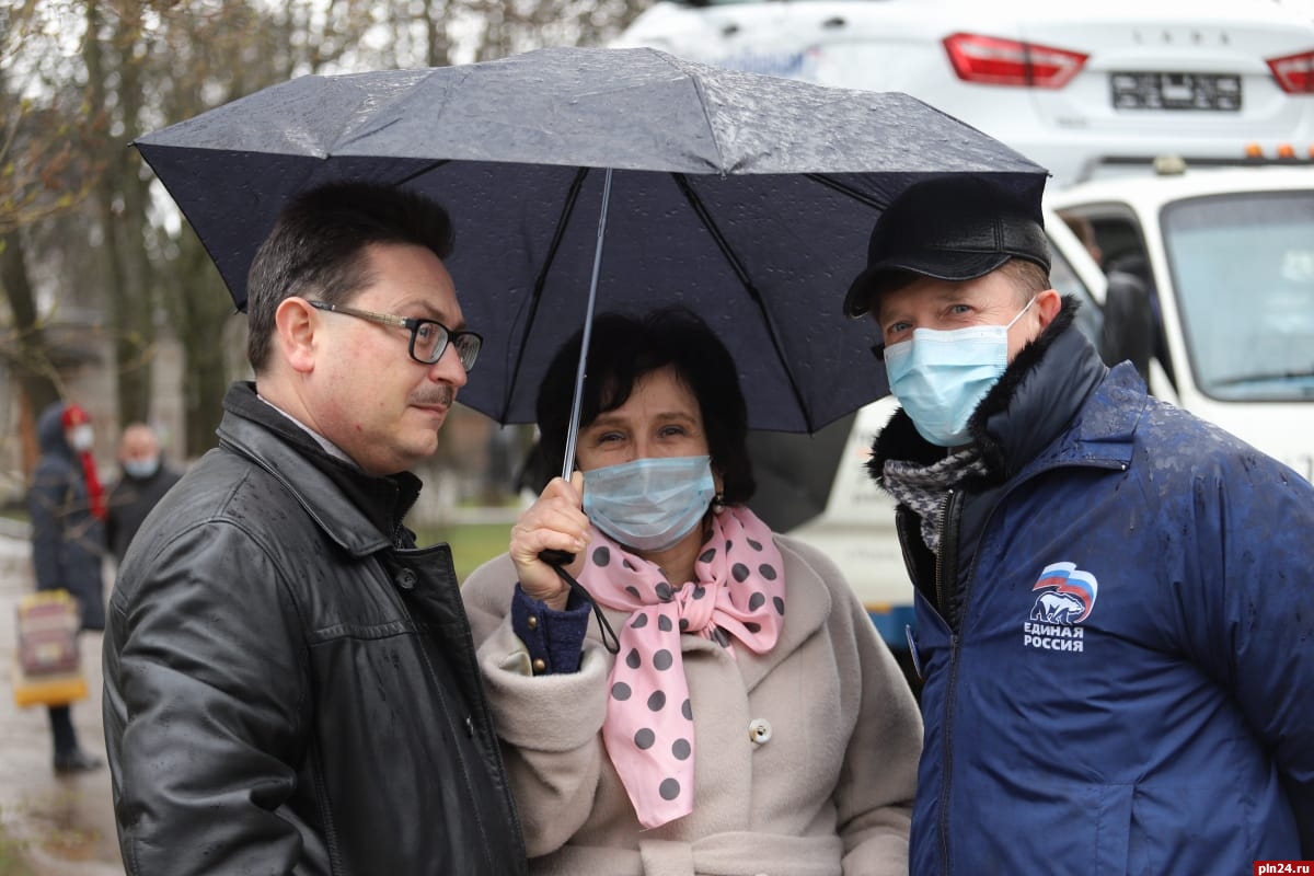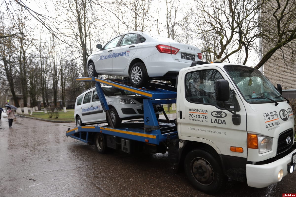 Председатель комитета по стратегическому планированию и бюджетной политике Псковской городской Думы, депутат по 12-му округу от «Единой России» Григорий Стороненков вручил ключи от автомобилей главному врачу Псковской городской поликлиники Галине Неваленной и заместителю председателя областного комитета по здравоохранению Денису Сачкову.