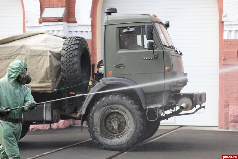 В целях предупреждения распространения вирусных инфекций военнослужащие ЗВО в средствах индивидуальной защиты проведут обеззараживание с применением дезинфицирующих растворов, специальных машин АРС-14 и войсковых комплектов ДКВ-1К, сообщили Псковской Ленте Новостей в пресс-службе ЗВО.