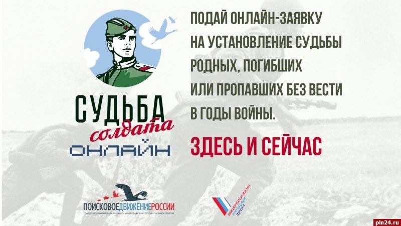 Псковичи смогут установить фронтовую историю родственников, погибших или пропавших без вести в годы Великой Отечественной войны, благодаря всероссийскому проекту «Судьба солдата онлайн».