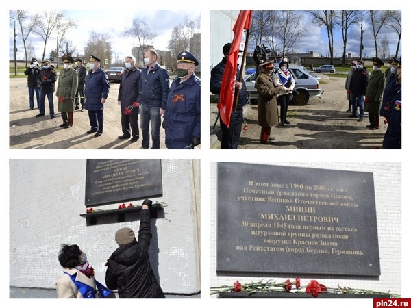 В Пскове состоялся митинг возле памятной доски на доме по ул. Новоселов, 48, в котором проживал Герой Советского Союза Михаил Минин, водрузивший Знамя Победы над Рейхстагом. В мероприятии приняли участие депутат Псковской городской Думы от избирательного округа №13 Галина Неваленная, члены местного отделения «Единой России», которые проживают на этом округе, председатель Собрания высшего офицерского состава («Клуб генералов и адмиралов») генерал-лейтенант Валентин Костенко. Памятный митинг проходил с соблюдением карантинных мер, связанных с пандемией коронавируса, его участники использовали защитные маски и соблюдали социальную дистанцию.