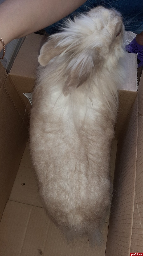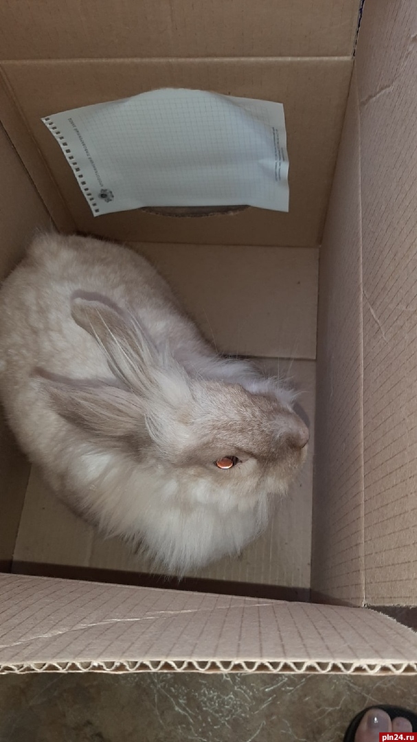 Псковичка спасла с улицы кролика. Женщина переживала, что животное могут заклевать вороны. Кролик находился у дома №59 по улице Юбилейной.