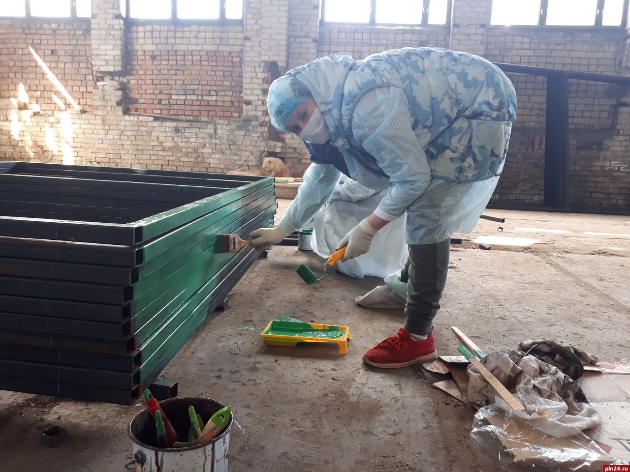 Псковские зоозащитники красят заготовки под вольеры с соблюдением санитарных норм и в предвкушении «собачьей радости». Об этом они сообщили в группе организации в соцсети ВКонтакте.