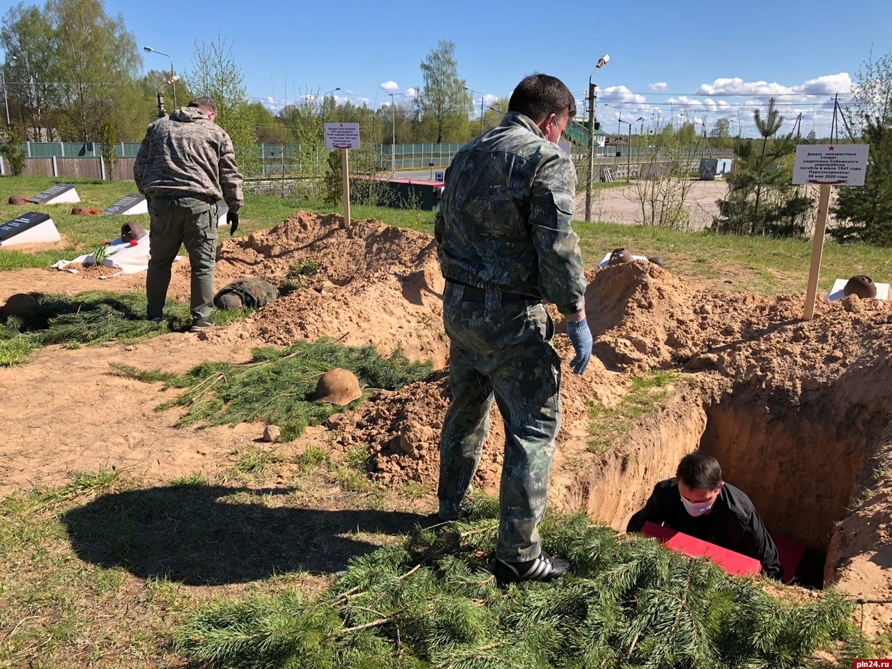 Участники поискового отряда «Забытый батальон» захоронили в деревне Заситино под Себежем прах 11 солдат, погибших в годы Великой Отечественной войне.