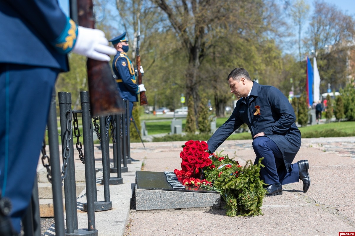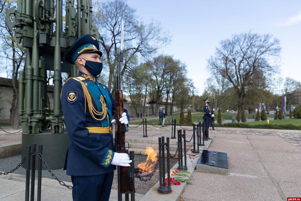 Торжественный ритуал возложения гирлянды Славы и цветов к мемориалу «Могила неизвестного солдата», приуроченный к 75-ой годовщине Победы, состоялся в Пскове.
