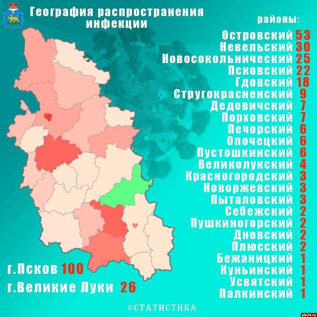 Губернатор Псковской области Михаил Ведерников опубликовал в своем инстаграм-аккаунте постпраздничную статистику по коронавирусу в регионе. На сегодняшний день в регионе 340 подтвержденных случаев заражения COVID-19.