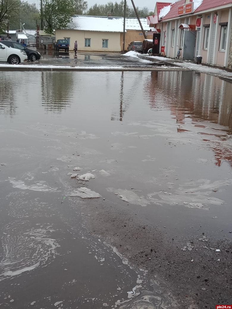 Жители Порхова жалуются, что после благоустройства рыночную площадь начало затапливать водой после дождя или снега. Фото опубликовано в группе «Подслушано в Порхове».