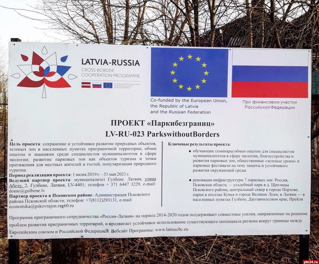 Напомним, благоустройство парка осуществляется в рамках реализации мероприятий международного проекта «Парки без границ» (Parks without borders) программы приграничного сотрудничества «Россия-Латвия» на период 2014-2020 годов.