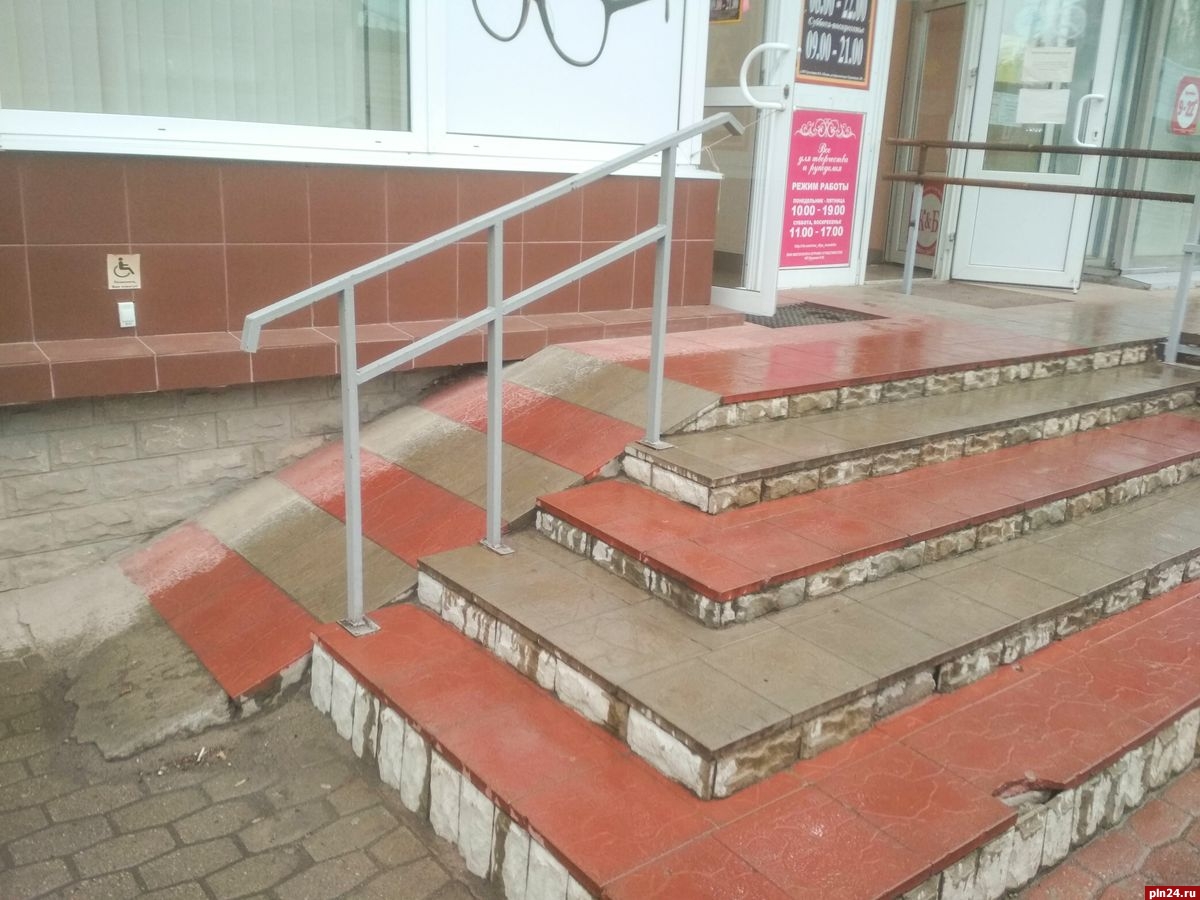 Магазин известной торговой сети сделал пандус для маломобильных групп населения, при этом сам себе перегородил удобный доступ для покупателей и вольно или невольно отгородился перилами от соседней торговой точки – аптеки. На это указал один из пользователей соцсети ВКонтакте в группе «Жесть по-псковски».