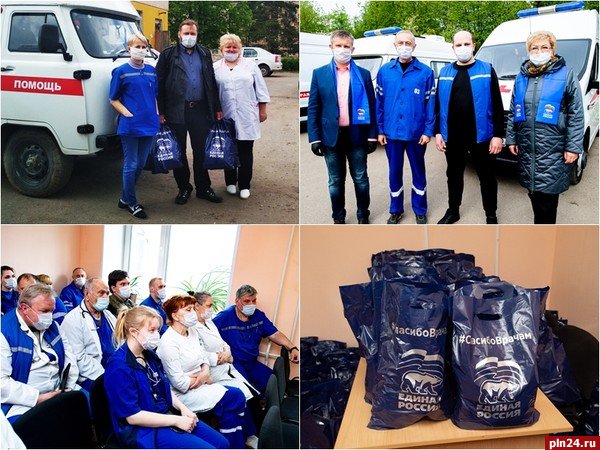 Члены фракции «Единой России» в Псковском областном Собрании депутатов Андрей Корнев и Елена Даньшова привезли врачам и медперсоналу 112 наборов, в которые входят чай, кофе, конфеты, шоколад, печенье и сушки.