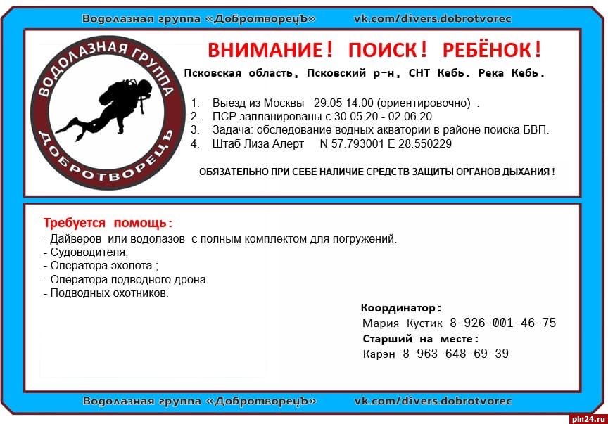 «Собираем команду из Москвы на поиск. Планируем выезд с 29 мая после обеда (ориентировочно в 14.00) до 2 июня.