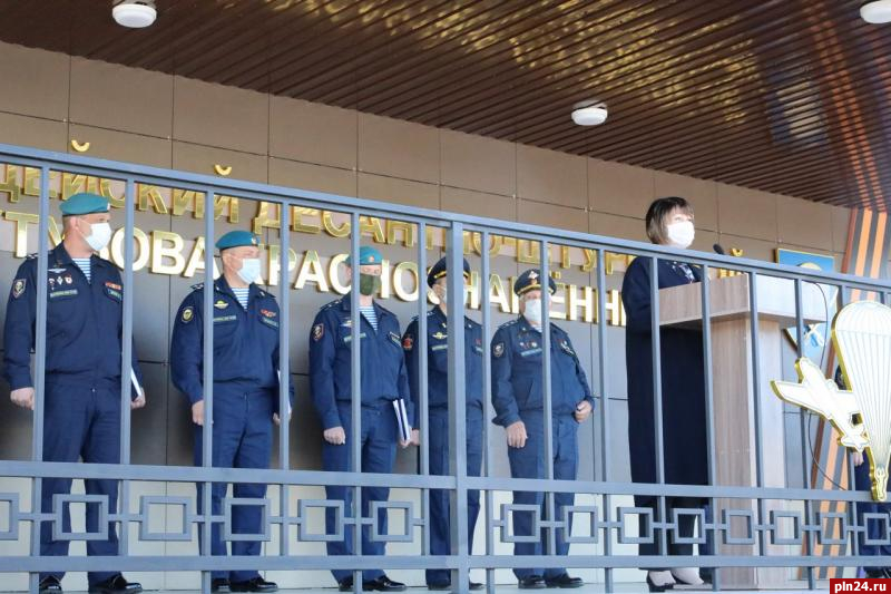 В митинге принял участие весь личный состав войсковой части, ветераны прославленного подразделения и гости, среди которых была глава Псковского района Наталья Федорова.