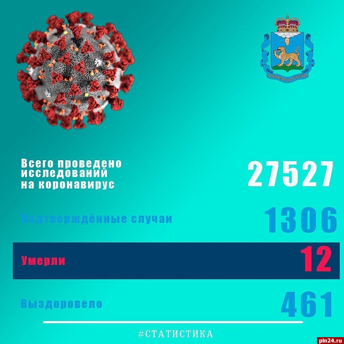 Всего на данный момент в Псковской области 1306 случаев коронавируса и 12 летальных исходов за все время пандемии. 461 человек выздоровел.