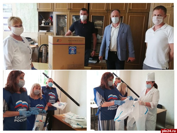В Пыталово партийцы передали медработникам 10 противочумных костюмов.