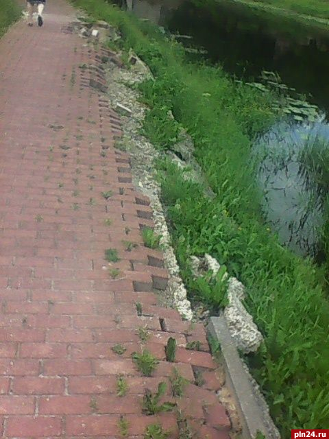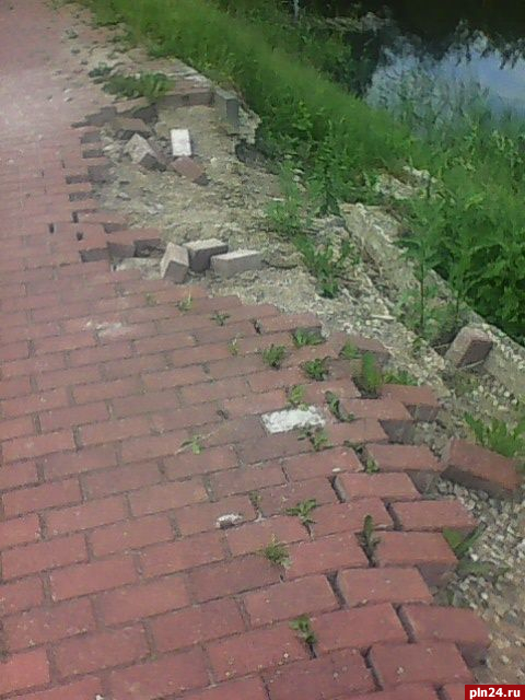 На развалившуюся дорожку из брусчатки на набережной реки Псковы обратил внимание фельдшер неотложной помощи, псковский общественник Иван Васильев.