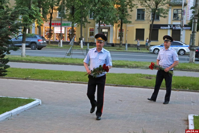 Указом президента РФ 22 июня объявлено Днем памяти и скорби по погибшим в годы Великой Отечественной войны. Ежегодно накануне траурной даты стражи порядка, члены Общественного совета при УМВД России по Псковской области, ветераны органов внутренних дел принимают эстафету памяти у других регионов страны.