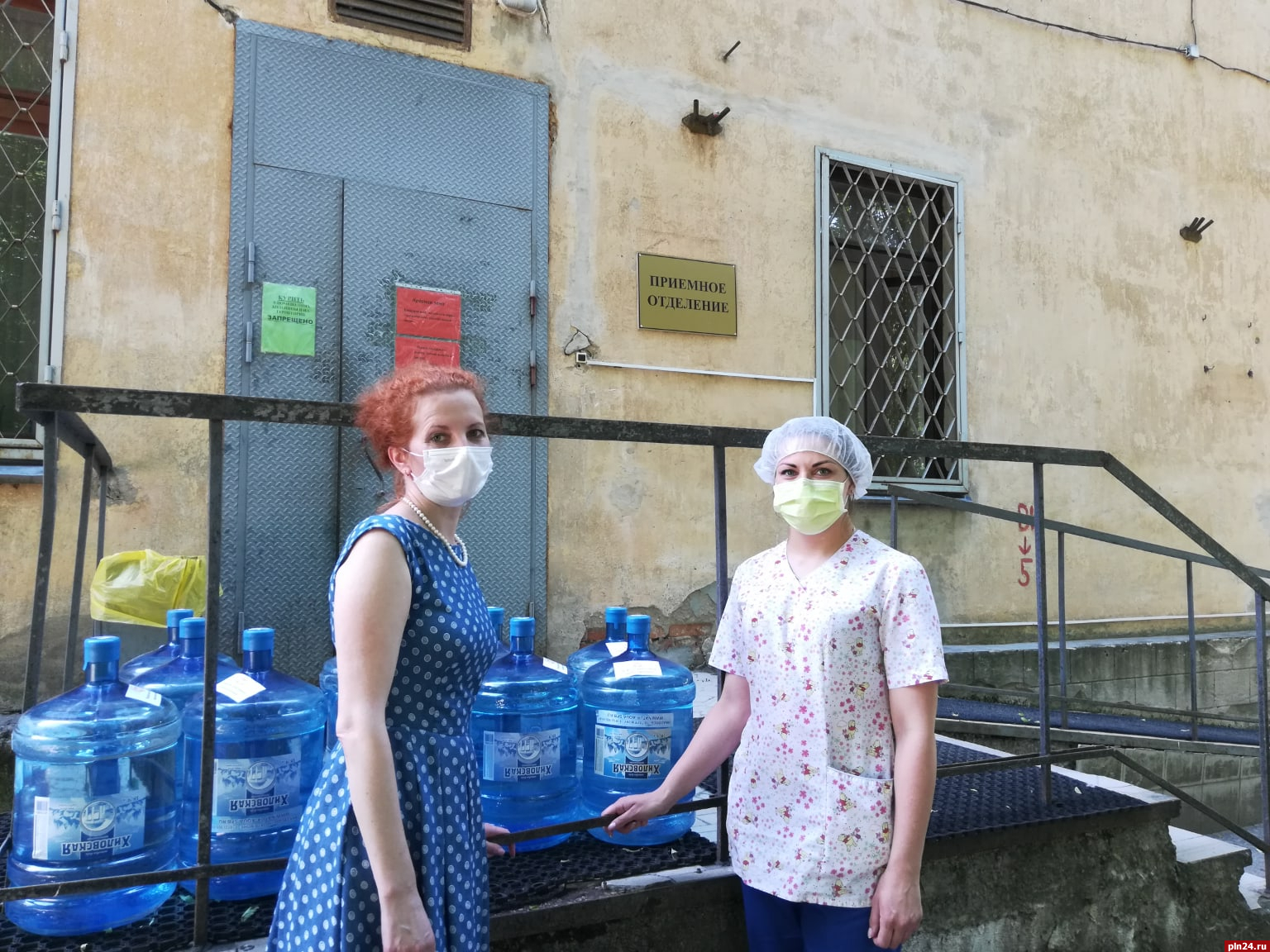 В течение недели в Псковскую горбольницу было доставлено порядка ста 19-литровых бутылок питьевой воды.