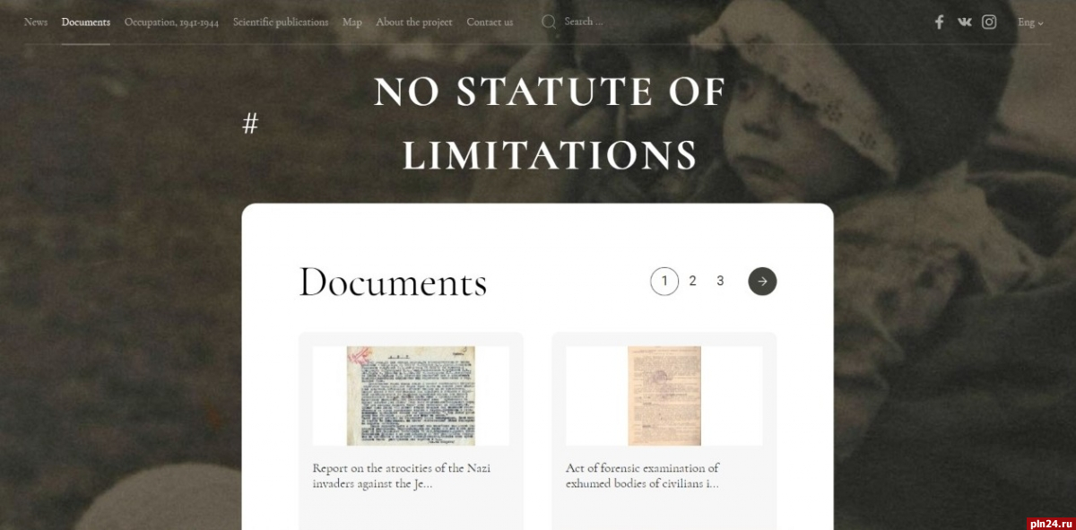 Государственный архив региона ведет работу над созданием сайта «Без срока давности. Псковская область». Его авторы намерены собрать на одной площадке максимальное количество материалов о преступлениях фашистов на территории региона в годы Великой Отечественной войны. Ресурс разработан в рамках всероссийского проекта «Без срока давности».