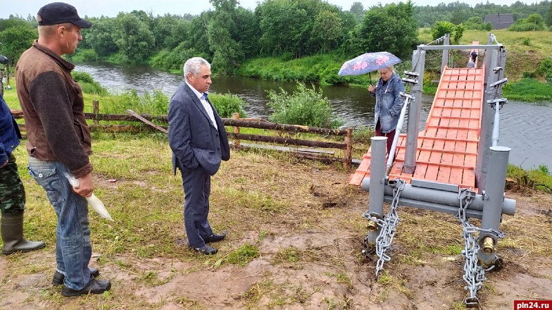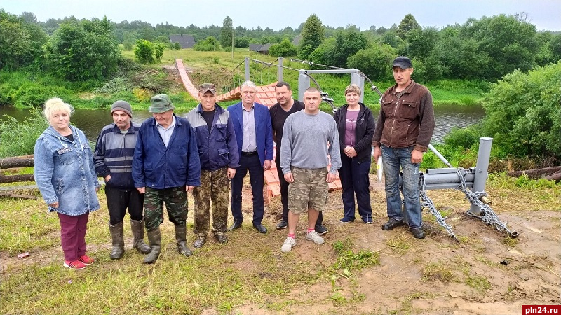 15 июля проверить качество проделанной работы и лично пройтись по новому мосту собрались глава Великолукского района Сергей Петров, первый заместитель главы администрации района по ЖКХ и градостроительству Алексей Кузьмин и глава Шелковской волости Любовь Богатырева.