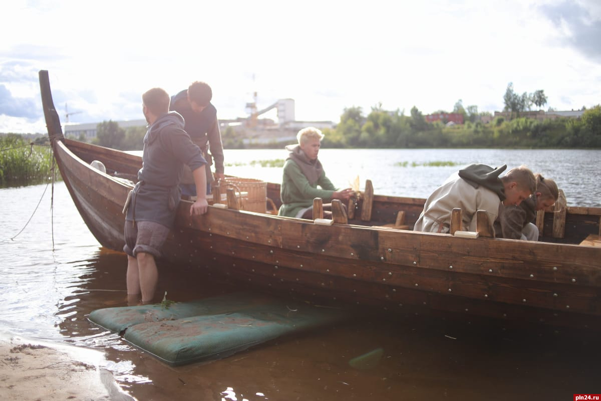 Усовершенствованная Ганзейская ладья отправилась в путешествие на Талабские острова вечером 22 июля. Как сообщает корреспондент Псковской Ленты Новостей, реконструкторы отправились в путь по реке Великой со Степановского лужка.