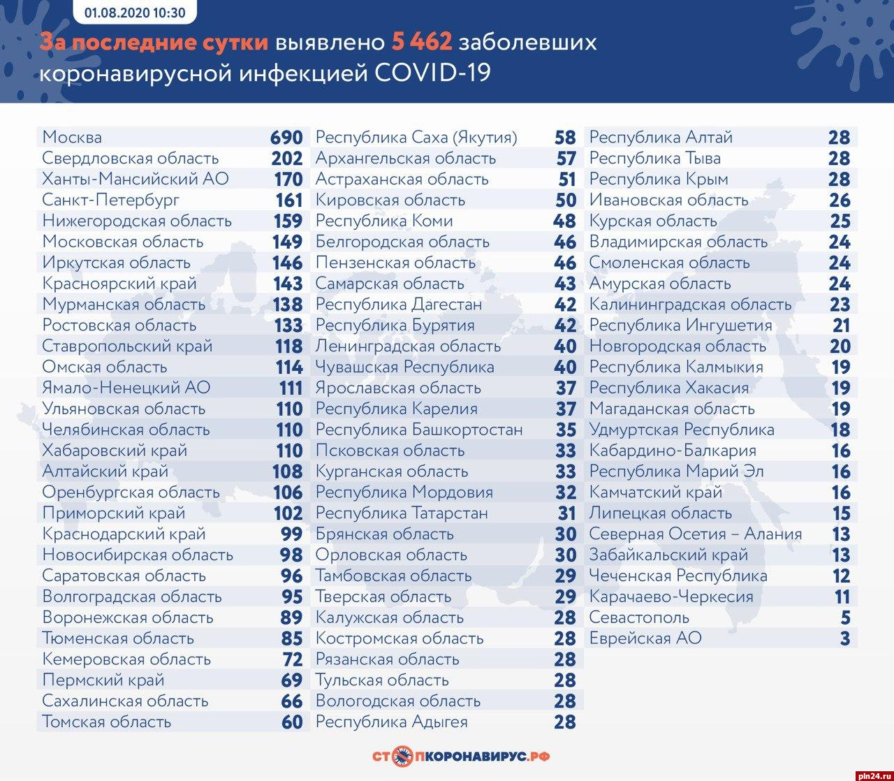 За последние сутки в России выявлено 5 462 заболевших новой коронавирусной инфекцией в 83 регионах, из них 1 356 случаев (24,8%) у контактных лиц без клинических проявлений болезни. Об этом сообщает портал Стопкоронавирус.рф