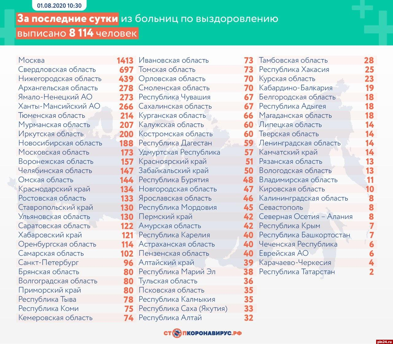 За последние сутки в России из больниц по выздоровлению от коронавирусной инфекции выписано 8 114 человек.