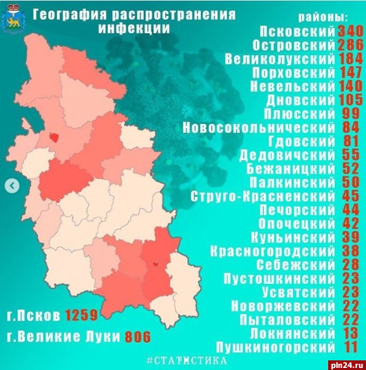 Коронавирус подтвердили за сутки у 37 жителей Псковской области, общее число инфицированных возросло до 4038. Об этом сообщил губернатор Михаил Ведерников в своем Instagram-аккаунте.
