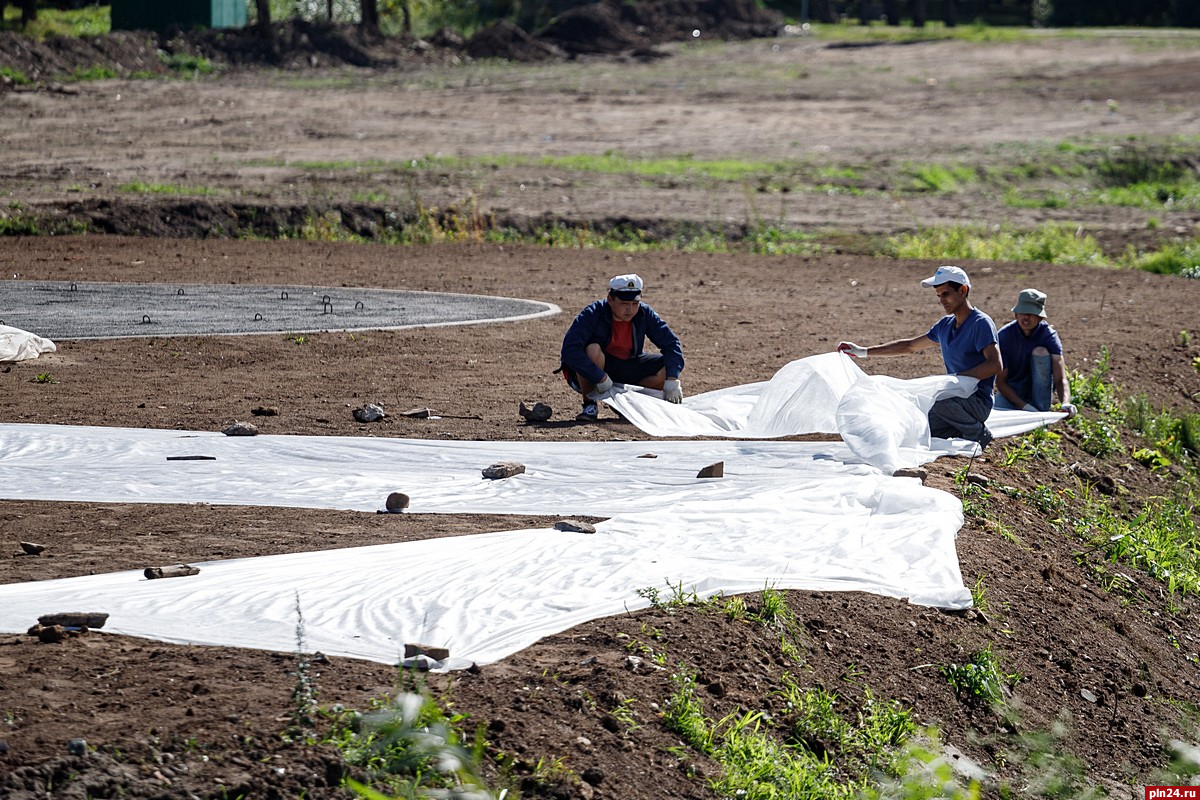 Контрольный срок сдачи объекта - 15 октября. Представитель подрядчика отметил, что заинтересован завершить благоустройство раньше срока. По его словам, все глобальные работы уже выполнены, из масштабных - осталось озеленение территории. В парке уже проложено почти 2 километра труб.