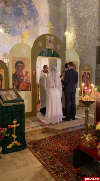 В храме Косьмы и Дамиана с Гремячей горы впервые за последние сто с лишним лет прошло венчание, сообщили Псковской Ленте Новостей.