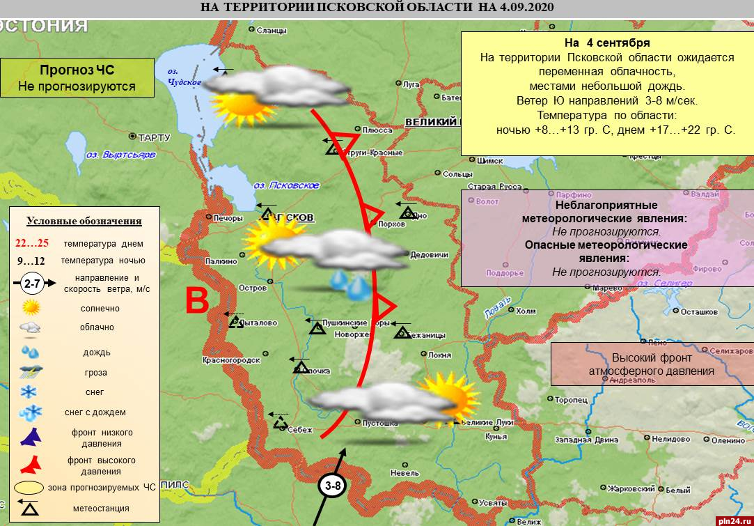Переменная облачность и местами небольшой дождь ожидается в Псковской области 4 сентября. Об этом Псковской Ленте Новостей сообщили в Псковском гидрометцентре.