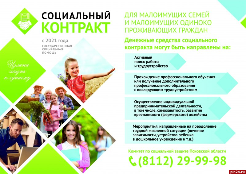 Псковичей информируют о возможности получения государственной помощи на основании социального контракта.