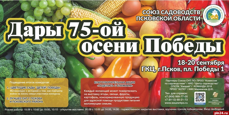 Городская выставка-конкурс «Дары 75-ой осени Победы» пройдет в Пскове с 18 по 20 сентября.