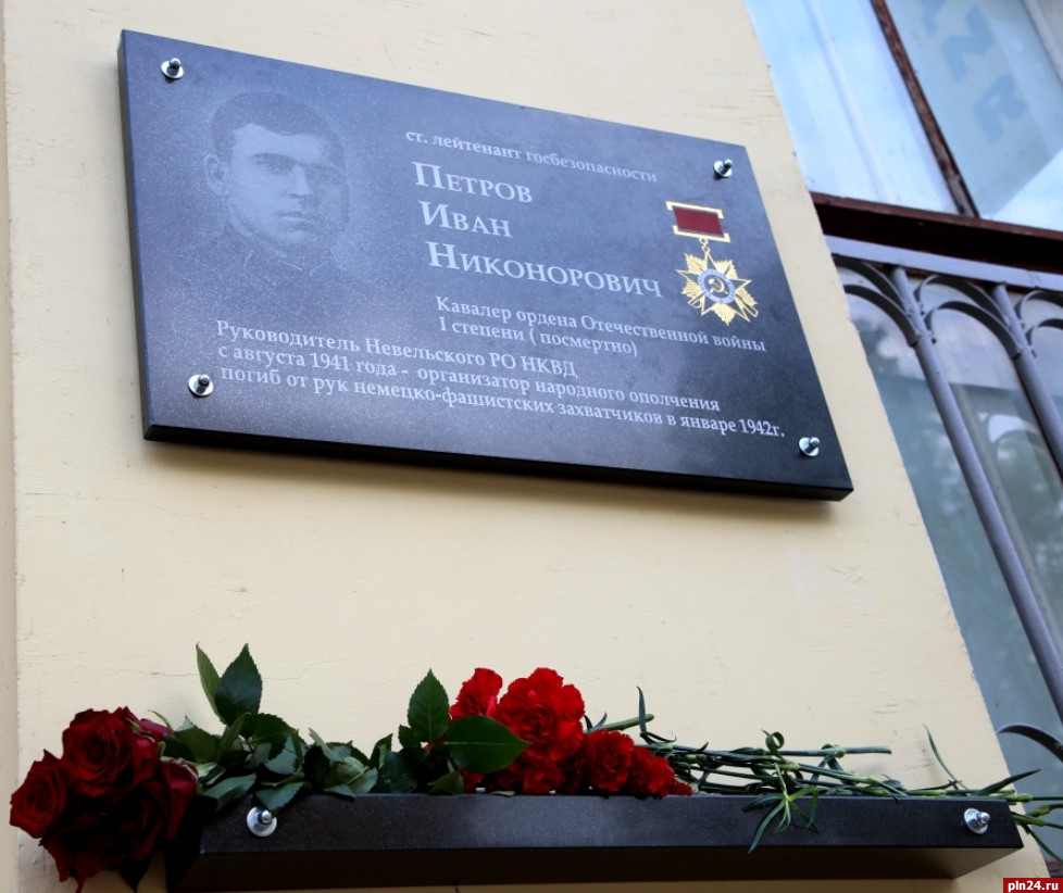 Мемориальную доску начальнику Невельского райотделения НКВД Ивану Петрову, погибшему в годы Великой Отечественной войны, открыли в Невеле 5 октября. Об этом Псковской Ленте Новостей сообщили в пресс-службе УМВД России по Псковской области.