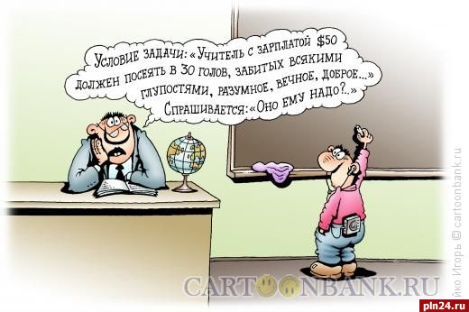 Вот, например, как вспоминает о своих заработках в школе бывший педагог-словесник Ольга, ныне менеджер одной из псковских фирм. «С зарплатой все было печально: ставка 18 часов, за нее платили 8-9 тысяч рублей, доплачивая до минималки. Дополнительных часов не было: наши мастодонты, проработавшие в школе всю жизнь, уже их благополучно поделили между собой. У меня было два пятых класса - 26 и 27 человек. Кроме самих занятий мне надо было заполнять журналы, составлять рабочие планы, готовиться к урокам - искать интересные игры, подбирать картинки, тексты диктантов. А вместе с этим - отвечать на звонки родителей, которые поступали порой до 11 ночи».
