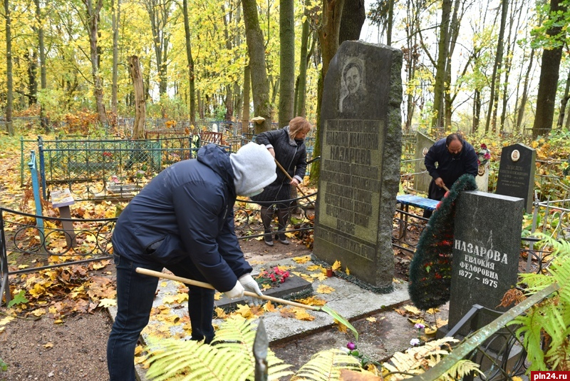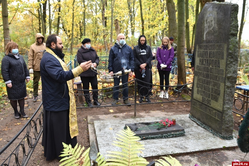 После наведения порядка на захоронениях настоятель Свято-Троицкого Собора в городе Острове, иерей Роман (Павлов) отслужил заупокойную литию по павшим защитникам Родины у могилы руководителя подпольной организации города Острова, Героя Советского Союза Клавдии Назаровой.