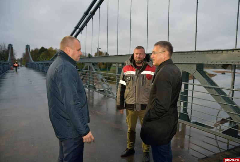 В завершение выезда Василий Осипов оценил ход капитального ремонта цепных мостов. На данный момент завершены работы по устройству асфальтобетонного покрытия мостового полотна. В настоящее время выполняется укрепление конусов Южного моста, ведутся работы по устройству декоративного освещения и монтаж смотровой тележки на Северном мосту. Также на Южном мосту подрядная организация производит антикоррозионная обработку цепей и ферм, расчистку русла, закончена разборка временного пешеходного моста. По Северному мосту работы выполнены на 95%, по Южному мосту — 80%.