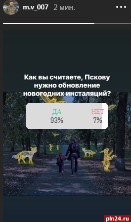 Губернатор Псковской области Михаил Ведерников проводит опрос в инстаграм-аккаунте по поводу обновления новогодних инсталляций в городе Пскове.