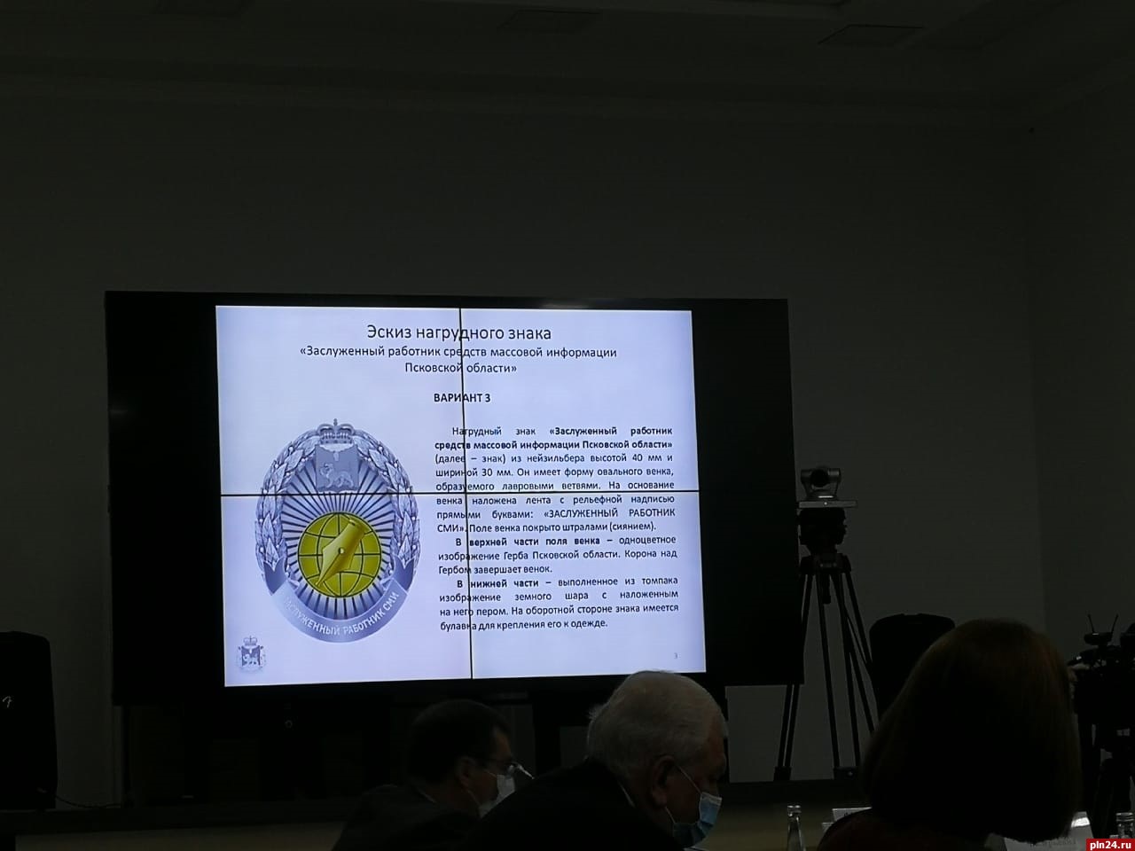 Эскиз нагрудного знака «Заслуженный работник СМИ Псковской области» выбрал областной Геральдический совет на заседании 9 ноября, передает корреспондент Псковской Ленты Новостей.