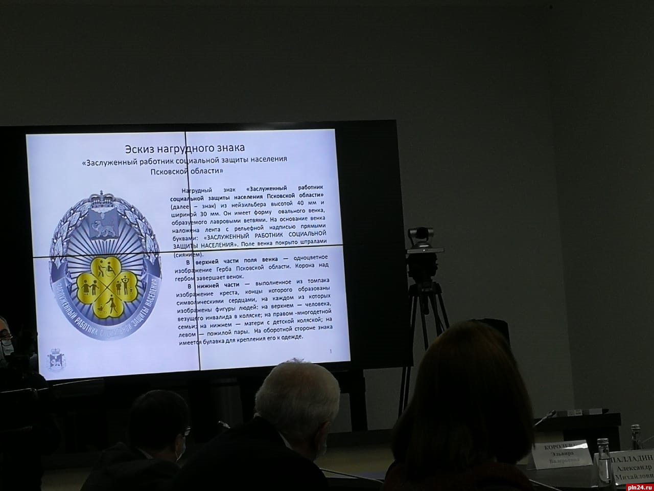 В итоге Геральдический совет Псковской области поддержал единогласно представленный вариант эскиза нагрудного знака.
