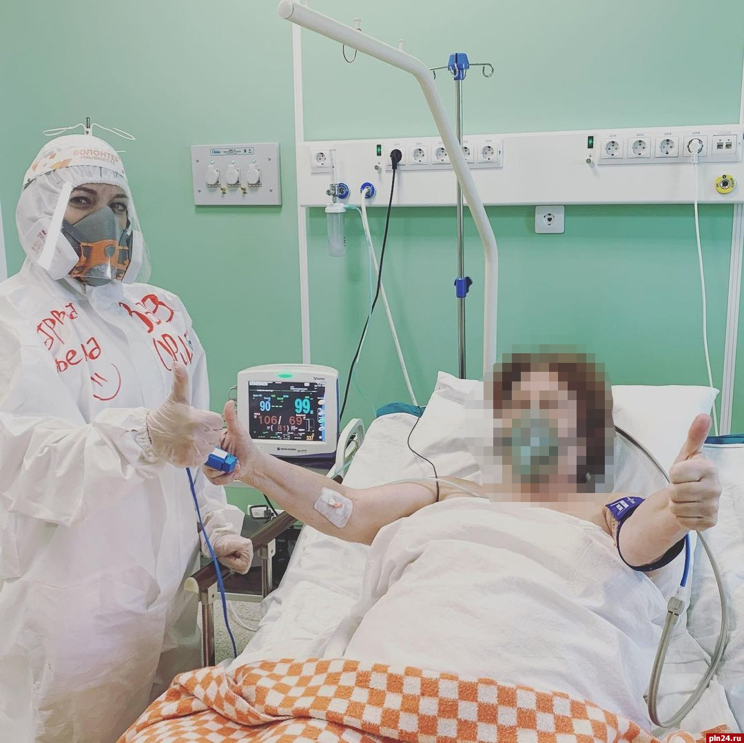 61-летнюю пациентку с бронхиальной астмой и 95-процентным поражением паренхимы легких спасли в Псковской областной инфекционной больнице. Об этом в своем Instagram-аккаунте сообщила заведующая отделением реанимации инфекционной больницы Варвара Оконечникова.