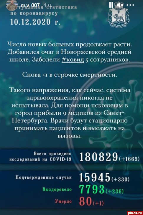 «Такого напряжения, как сейчас, система здравоохранения никогда не испытывала, – отметил глава региона. – Для помощи псковичам в город прибыли 9 медиков из Санкт-Петербурга. Врачи будут стационарно принимать пациентов и выезжать на вызовы».