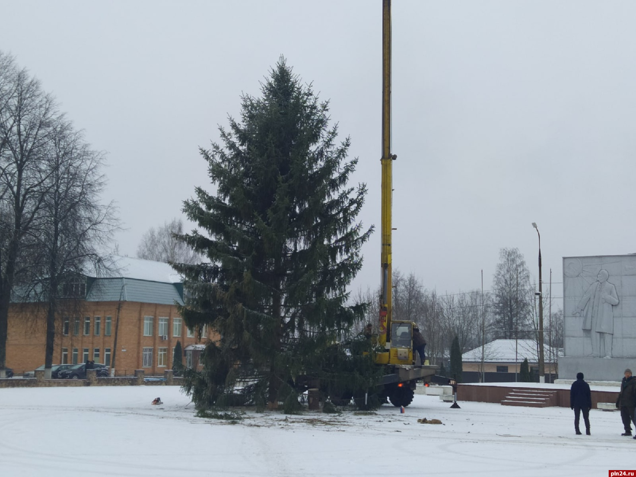 Новогодние ели начали устанавливать в районных центрах Псковской области. Так, 12-метровую ель установили на центральной площади Плюссы, пишет газета «Плюсский край».