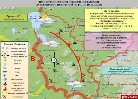15 декабря на территории Псковской области ожидается облачная погода с прояснениями, местами небольшие осадки в виде снега, мокрого снега. Как сообщает ГУ МЧС России по Псковской области со ссылкой на данные синоптиков, на дорогах гололедица.