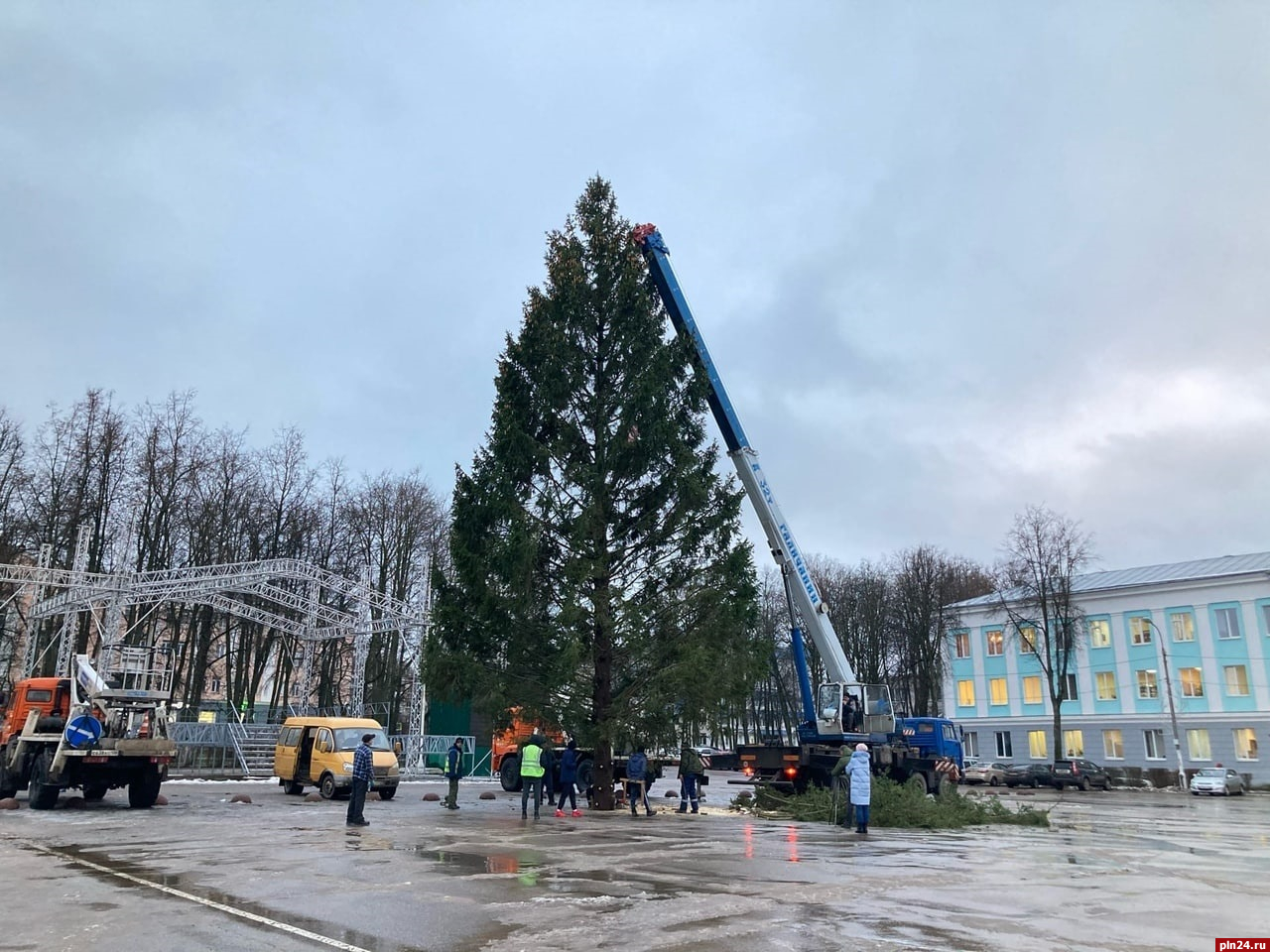 Главная новогодняя ель установлена на площади Ленина в Великих Луках, сообщает портал «Луки.ру».