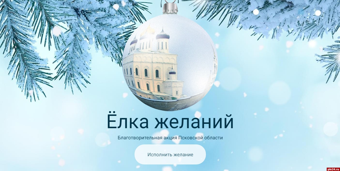 В Псковской области продолжается прием заявок на участие в региональной благотворительной акции «Елка желаний», благодаря которой каждый житель области может исполнить мечту детей, лишенных родительской заботы.
