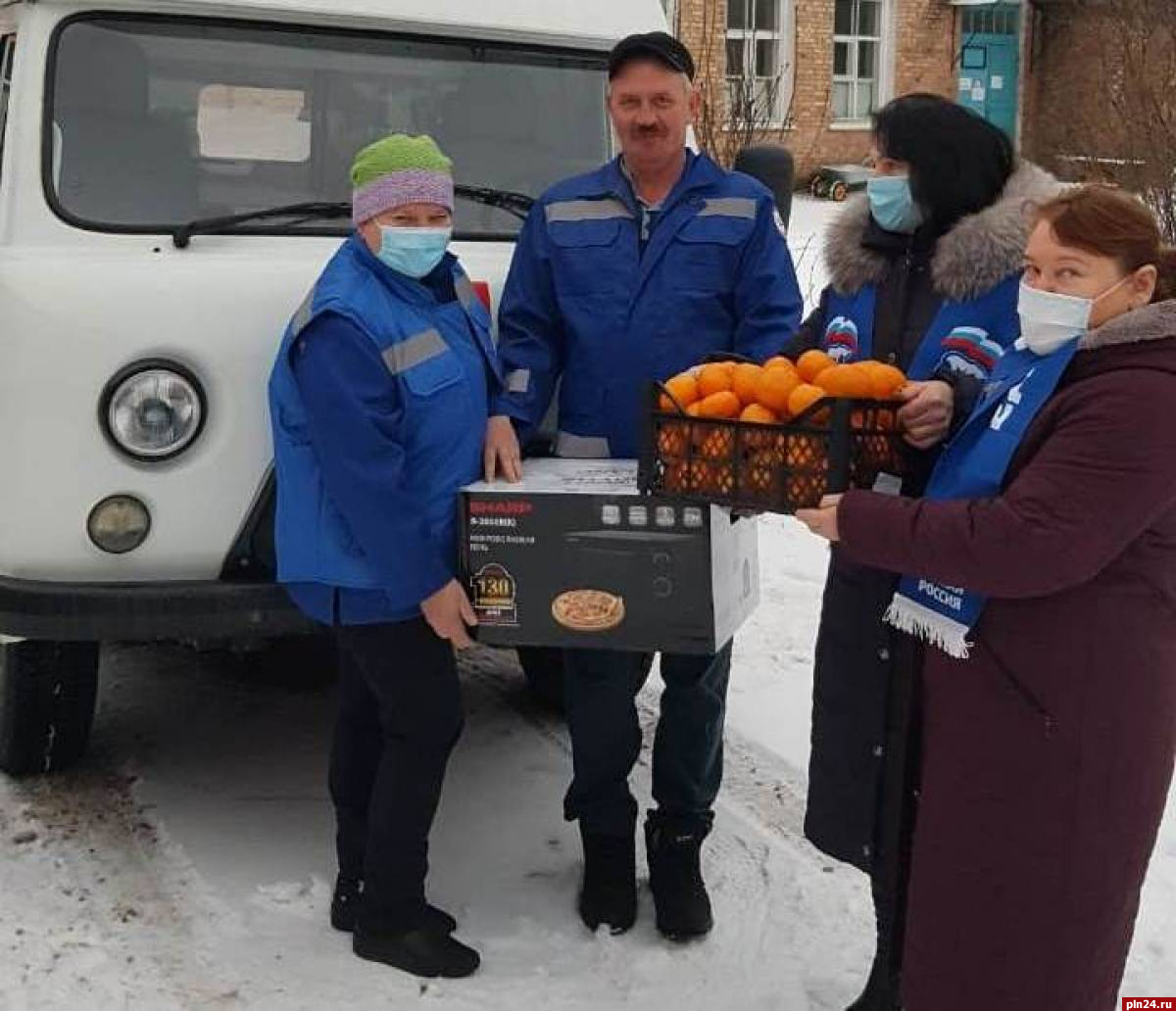 Как Псковской Ленте Новостей сообщили в пресс-службе регионального отделения партии «Единой России», в преддверии Нового года и Рождества активисты Красногородского района поздравили сотрудников скорой помощи поселка. Они передали им микроволновую печь и 10 килограммов мандаринов с благодарностью за заботу и внимание к людям, напряженную и самоотверженную работу в период пандемии коронавируса.