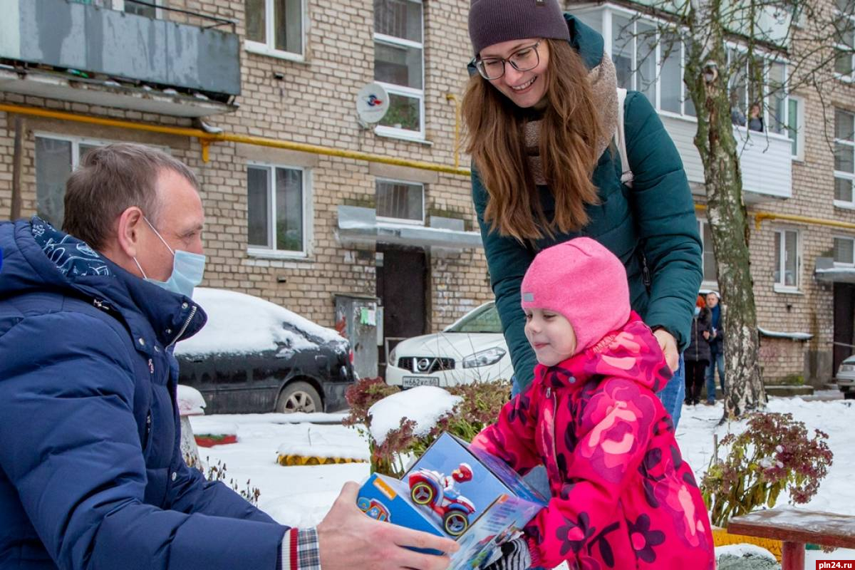 Секретарь Псковского регионального отделения партии «Единая Россия» поздравил Арину и ее маму Елену с наступающим Новым годом, пожелал здоровья и счастья. «Не болей, слушайся маму», – сказал он маленькой великолучанке и передал ей подарок.
